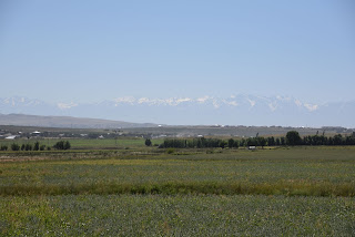 Die ersten schneebedeckten Berge im Süden Richtung Usbekistan sind zu sehen.