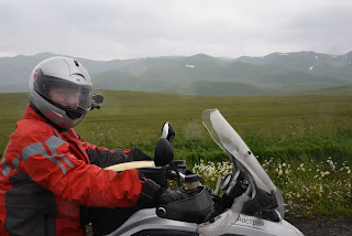 Zu Mittag fahren wir aus Kazbegi ab, zum Glück hat es für kurze Zeit weniger heftig geregnet, so daß wir die Motorräder einigermaßen trocken beladen konnten.